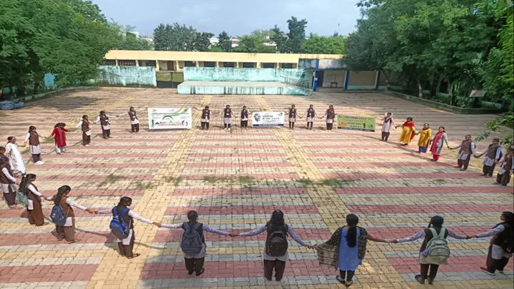 स्वच्छता ही सेवा-2024 अभियान अंतर्गत स्वभाव स्वच्छता संस्कार स्वच्छता थीम पर कमला नेहरु कन्या महाविद्यालय एवं नगर के वार्ड क्रमांक 13 बूढी स्थित प्राथमिक शाला नपा अध्यक्ष श्रीमती भारती सुरजीत ठाकुर की उपस्थिति में मानव श्रृंखला के माध्यम से स्वच्छता का संदेश प्रसारित किया गया।